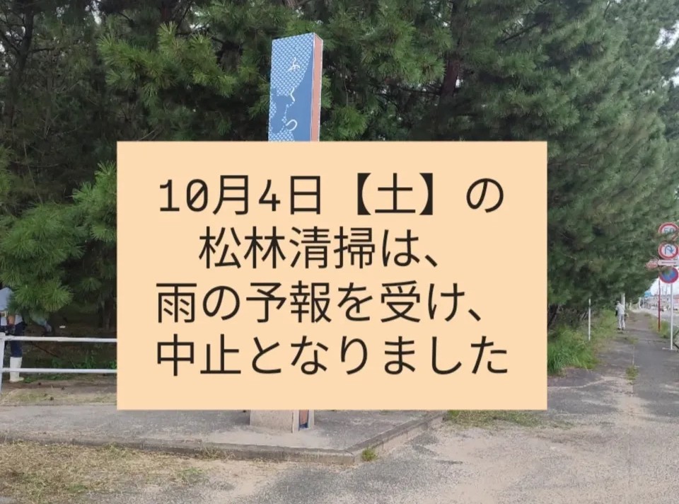 本日10月4日(土)に予定していた西福間4町目松林の松林保全活動は、雨予報が出ていたため、中止になりました。