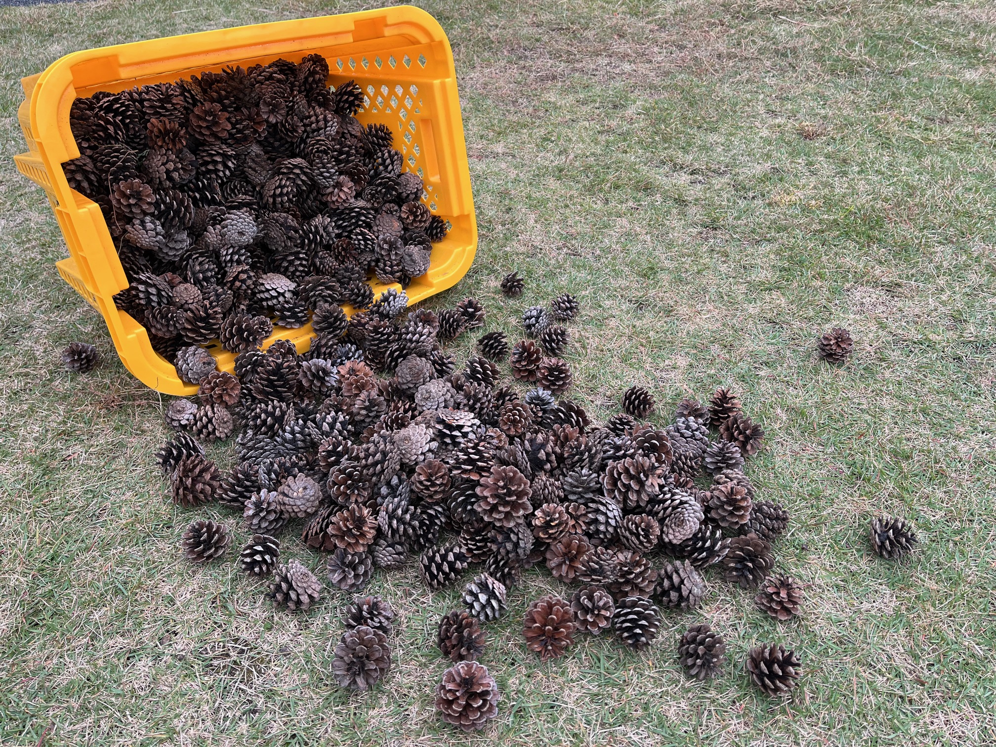 毎月、福間海岸の松林保全活動で拾っている松ぼっくりを使ったゲームです。