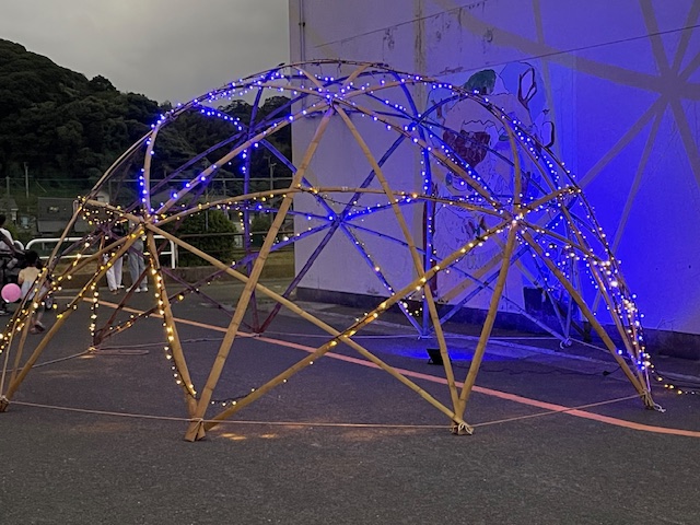 10月12日(日)に第17回竹灯まつりを開催しました。400名以上の市民の皆様に、ご来場いただきありがとうございました。少林寺拳法の出店は射的、型抜き、焼き鳥、豚バラ焼き、子育て部会の出店はフライドポテト、フランクフルト、揚げパン、郷づくりは光る風船、駄菓子の販売など、「バンブー」バンドの演奏と癒しの竹あかりを市民の皆様に楽しんでいただきました。連休中は夏日で、秋まつりというより、夏まつりのようで、浴衣姿のお子さんもいらっしゃいました。暑い中、準備、片付けにご協力をいただいた福間東中ボランティア生徒、市民ボランティア、自治会、市職員、竹灯まつり実行委員会の皆様、大変お疲れ様でした。本当にありがとうございました。
