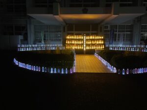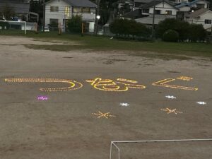 10月12日(日)に第17回竹灯まつりを開催しました。400名以上の市民の皆様に、ご来場いただきありがとうございました。少林寺拳法の出店は射的、型抜き、焼き鳥、豚バラ焼き、子育て部会の出店はフライドポテト、フランクフルト、揚げパン、郷づくりは光る風船、駄菓子の販売など、「バンブー」バンドの演奏と癒しの竹あかりを市民の皆様に楽しんでいただきました。連休中は夏日で、秋まつりというより、夏まつりのようで、浴衣姿のお子さんもいらっしゃいました。暑い中、準備、片付けにご協力をいただいた福間東中ボランティア生徒、市民ボランティア、自治会、市職員、竹灯まつり実行委員会の皆様、大変お疲れ様でした。本当にありがとうございました。