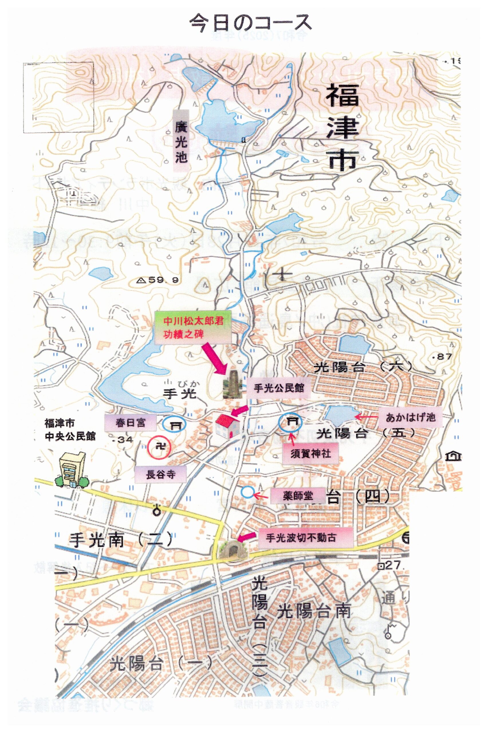 10/28秋晴の中、郷育推進課主催のふくつ散歩神興編が行われました。今回は、手光地区の史跡めぐりに市民24名が参加されました。集合時間には風もあり寒かったですが、観光ボランティアガイドの中川さんの案内で、稲刈りの終わった田園の中を歩いている間に、身体も温もり、のんびりと史跡散策を参加者の皆さん楽しまれていました。