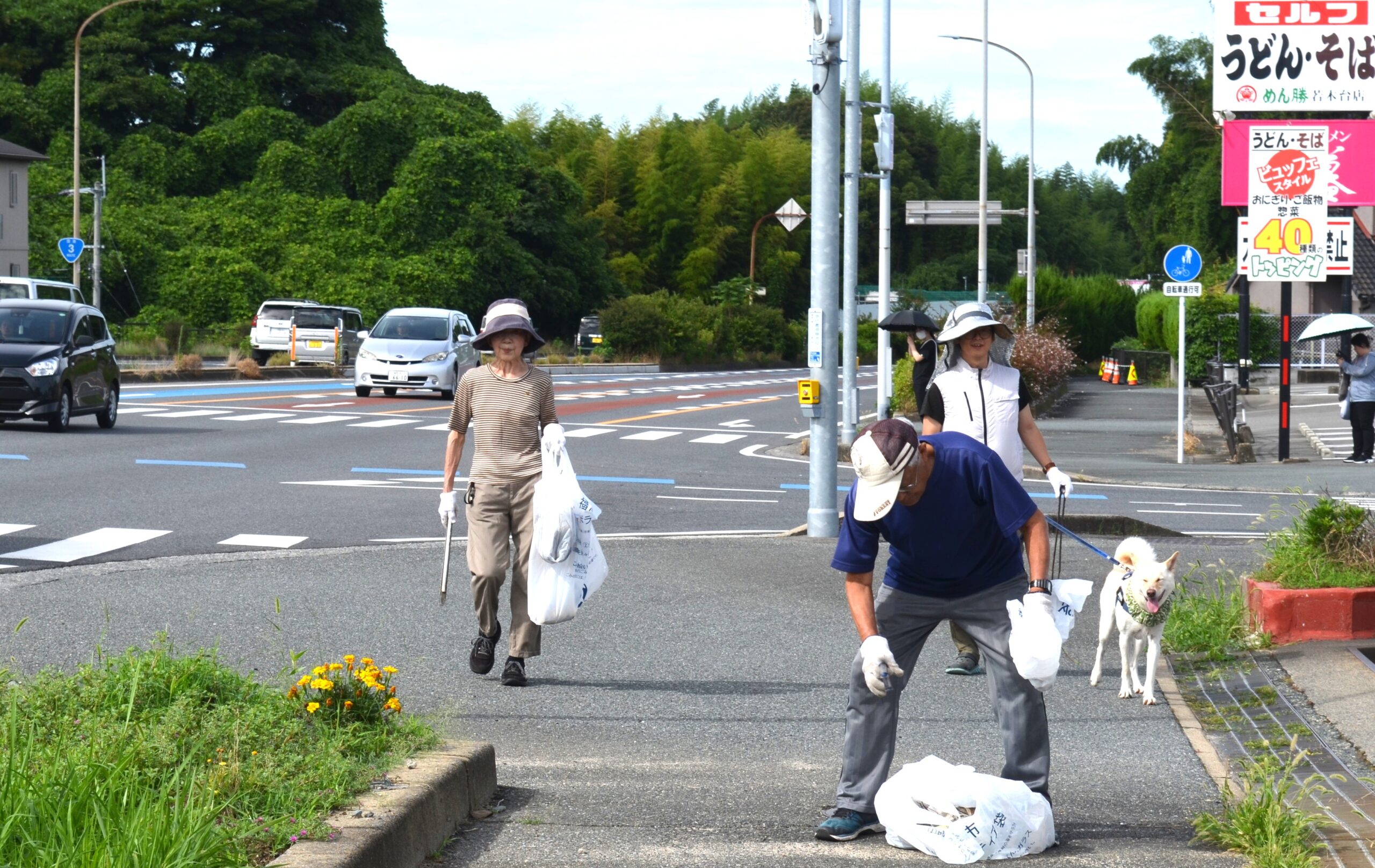 若木台交差点を拠点にして、3号線の上下線(1㎞)の両側の歩道合計4㎞のゴミ拾いを行います