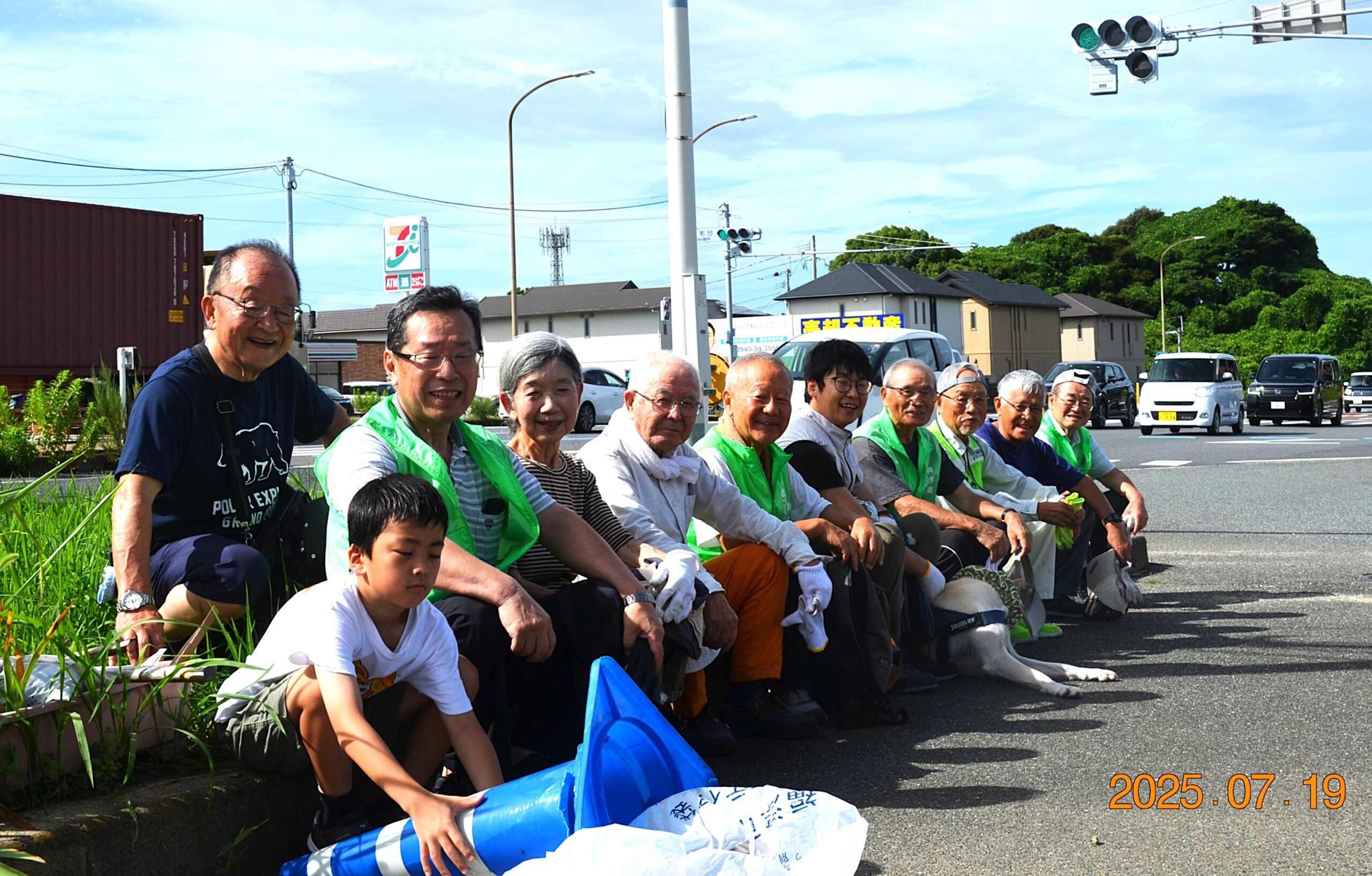 若木台交差点を拠点にして、3号線の上下線(1㎞)の両側の歩道合計4㎞のゴミ拾いを行います