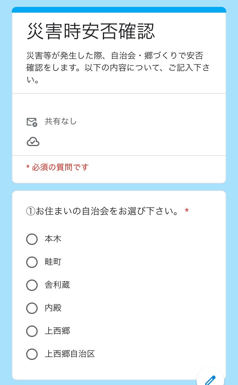 入力をして送信を押すと、郷づくりで安否確認の状況を把握し、自治会にフィードバックします。