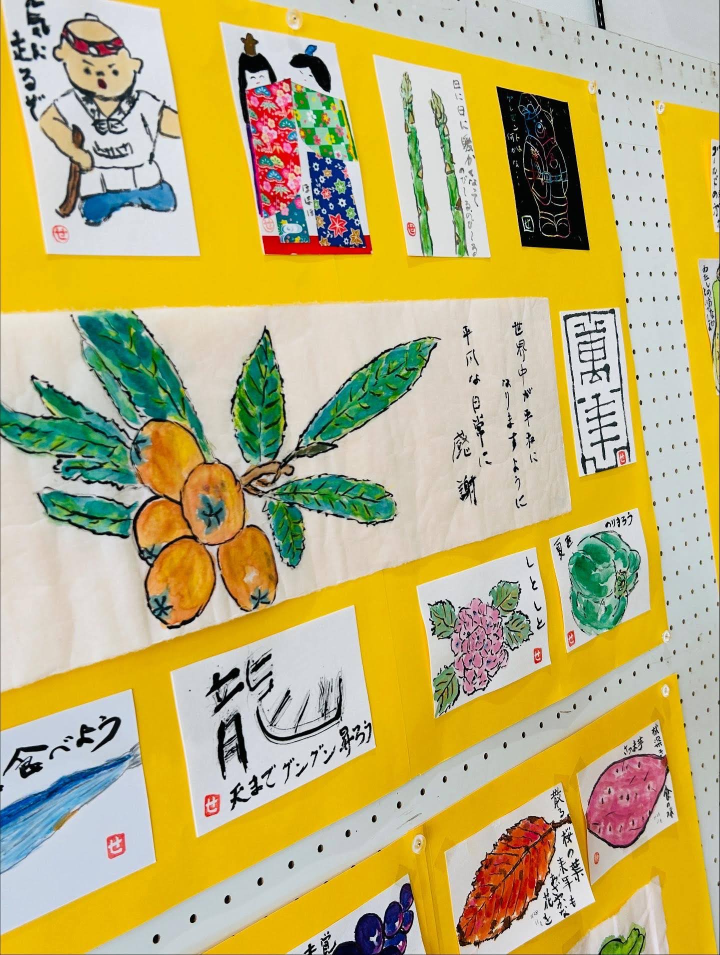 会場ロビーや研修室では、さまざまな作品展示。素敵な絵手紙、習字、陶芸など…見ごたえたっぷり!