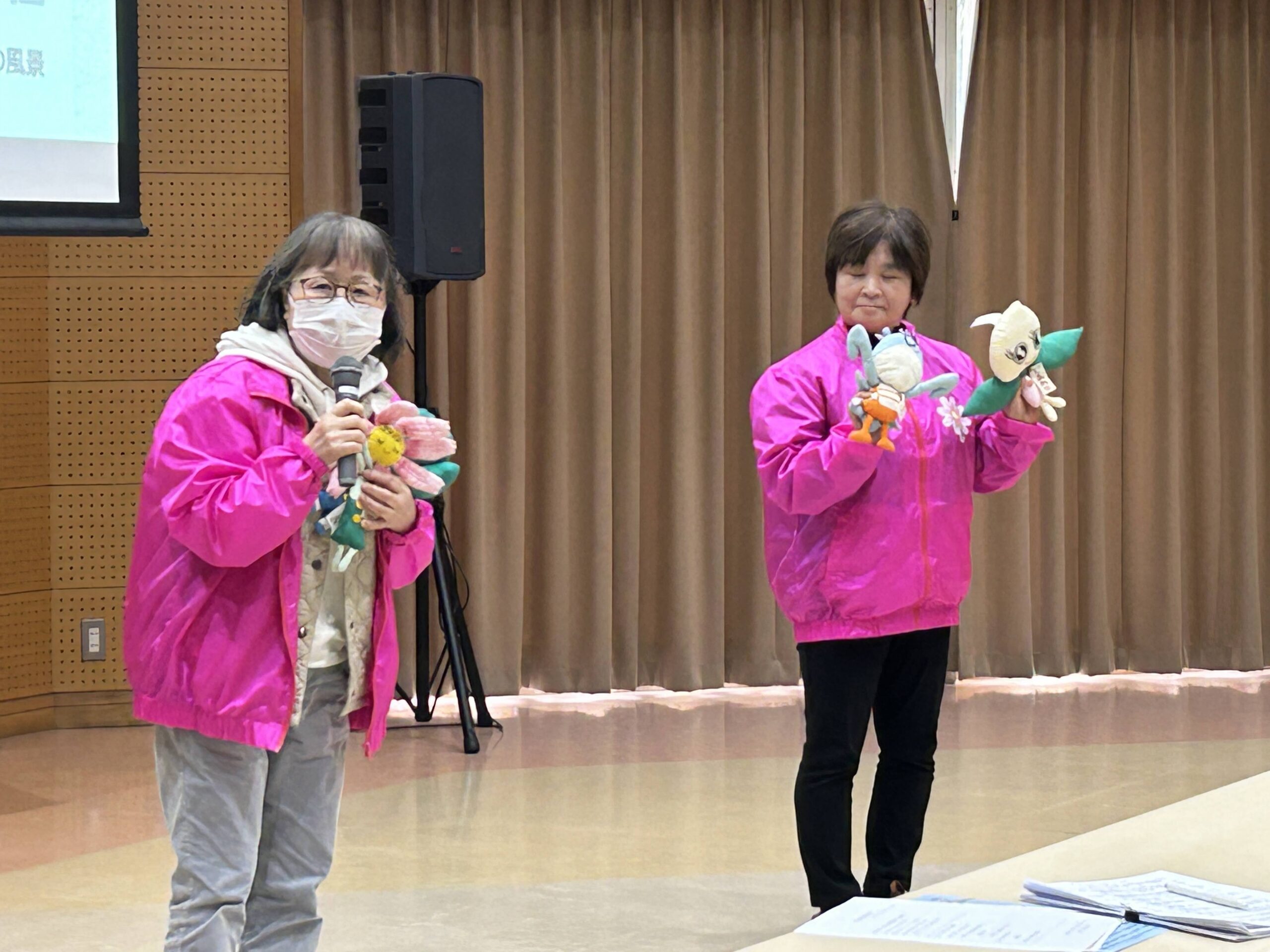 食育人形劇班のおふたり。とってもかわいいマスコットキャラクター!楽しんで活動を行われている様子がうかがえました。